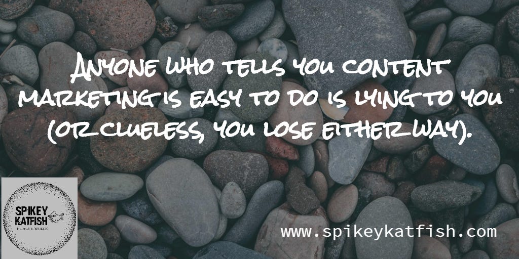 Anyone who tells you content marketing is easy to do is lying to you (or clueless, you lose either way).