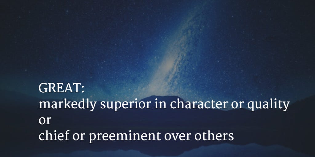 Let’s be honest – there is only a limited number of folks in any particular field of endeavor who are legitimately “great.” I can write better than many, on a good day, maybe even most folks. Does that make me “great?” I’ve got an ego, but, I’m also honest with myself.