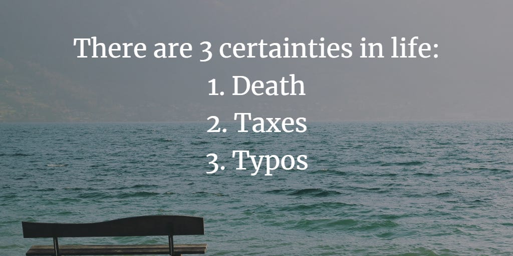 And there’s been at least one typo in most of what I’ve published. Hell, I had to correct a they’re/their typo on a LinkedIn post last week! That’s bad enough and I hate it.